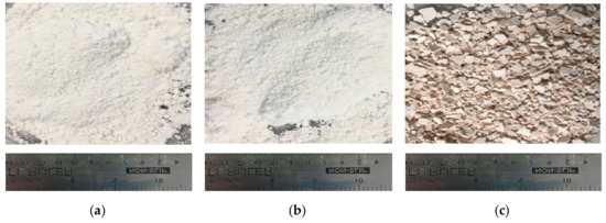 Photograph of (a) ASP, (b) HNTs, (c) ASP-loaded HNTs after drying in the oven at 40 °C overnight. The resultant blend had a pale pink colour as compared to the white colour of the ASP and HNTs individually.
