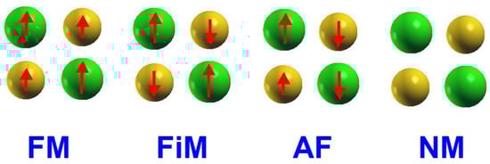 The schematic diagram of 4 magnetic states: FM, FiM, AF, and NM.