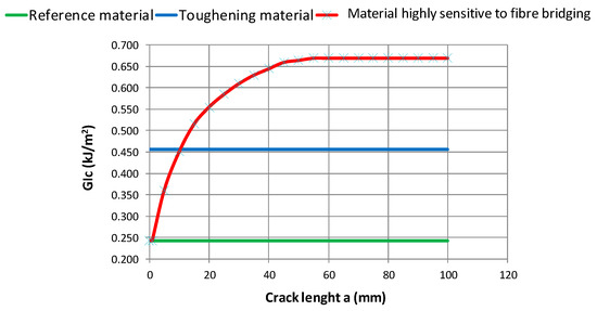 The resistance curve, characterising the material as highly sensitive to the fibre bridging, is shown in the chart in Figure 6, and is compared with the constant values of GIc.