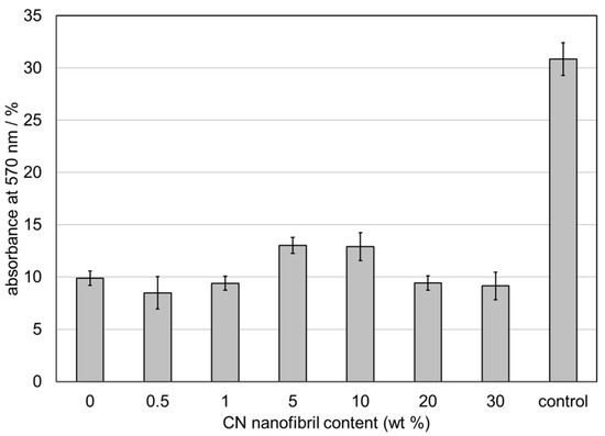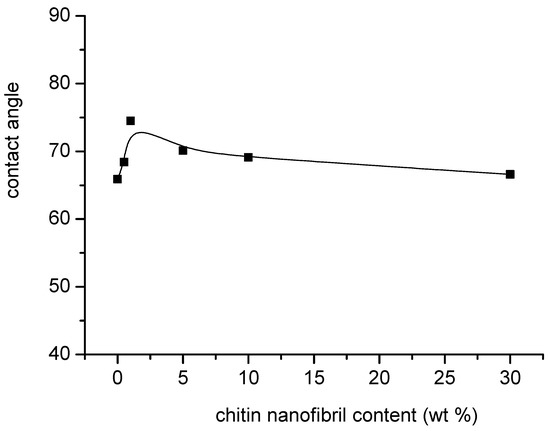 The water contact angle on chitosan and chitosan-based composite films was determined by the sessile drop method using the drop shape analyzer DSA30 (Krüss GmbH, Hamburg, Germany). Distilled water was used as the test liquid. Five measurements were taken for each film sample.