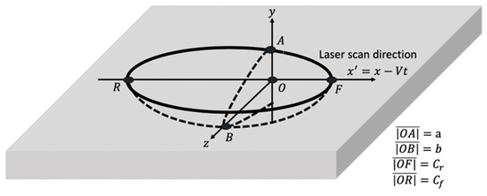 where is laser power energy, is laser absorptivity, are the respective radii of the sides, rear and front of the ellipsoid as shown in Figure 3. is the scan speed.