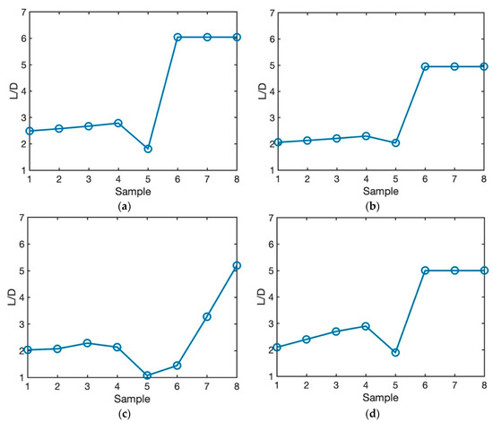 In this section, the effect of process parameters such as laser power and scan speed on balling effect is investigated for eight different process parameters as listed in Table 1. As shown in Figure 11a, the balling effect is predicted using steady state moving point heat source approach. is predicted for samples 1 through 5, which indicates that the process parameters are selected appropriately resulting in the formation of no balls. This is also indicated in the experimental measurements. However, sample 6 through 8 experience the balling effect since the predicted . This is also observed in the experimentation as reported by Soylemez [39].
