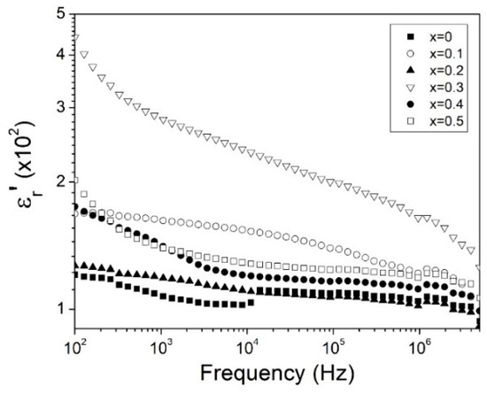 - Hunpratub, S.; Thongbai, P.; Yamwong, T.; Yimnirun, R.; Maensiri, S. Dielectric relaxations and dielectric response in multiferroic BiFeO3 ceramics. Appl. Phys. Lett. 2009, 94, 062904. [Google Scholar] [CrossRef]