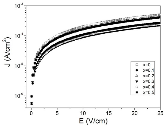 - Pedro-García, F.; Bolarín-Miró, A.M.; Sánchez-De Jesús, F.; Cortés-Escobedo, C.A.; Valdez-Nava, Z.; Torres-Villaseñor, G. Stabilization of α-BiFeO3 structure by Sr2+ and its effect on multiferroic properties. Ceram. Int. 2018, 44, 8087–8093. [Google Scholar] [CrossRef]