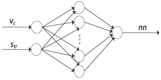 In addition, numerical simulation of process parameters was employed to predict the nonlinear technological process. It is rather difficult to define nonlinear processes by means of mathematical equations. Given that the milling process is a control object, then the simulated parameters, the cutting force components Fx and Fy and the vibration displacement (x) constitute its output parameters. The variable input parameters of milling were cutting speed vc and trochoidal step str, while the remaining parameters were fixed. Figure 2 presents the schematic model of the process, where vc and str denote variable input parameters and nn gives the currently simulated corresponding parameter. Since there were three machining parameters and two workpiece materials analysed in the study—AZ31 and AZ91D—the total number of six different neural networks were obtained.