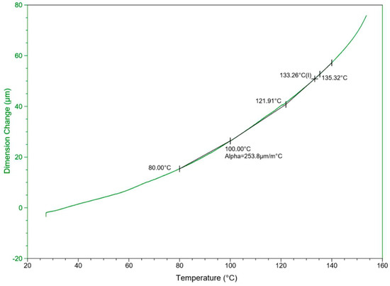 Typical thermomechanical curve for PVDF–SSPF showing the linear expansions based on temperature T (°C) and dimension change (µm).