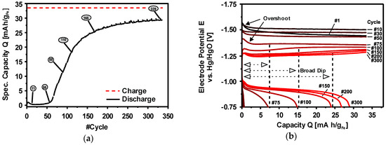 - Kitamura, H.; Zhao, L.; Hang, B.T.; Okada, S.; Yamaki, J. Effect of Charge Current Density on Electrochemical Performance of Fe/C Electrodes in Alkaline Solutions. J. Electrochem. Soc. 2012, 159, A720–A724. [Google Scholar] [CrossRef]