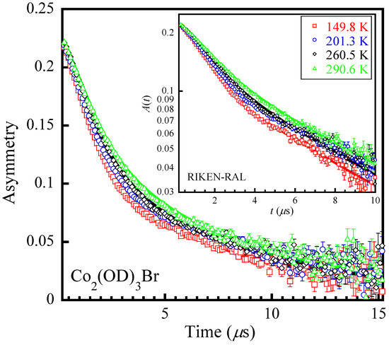 - Uemura, Y.J.; Hayano, R.S.; Imazato, J.; Nishida, N.; Yamazaki, T. Non-secular part of nuclear dipolar broadening detected by zero-field spin relaxation of positive muon. Solid State Commun. 1979, 31, 731–734. [Google Scholar] [CrossRef]