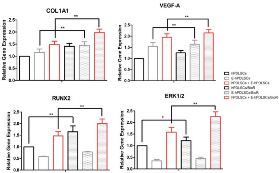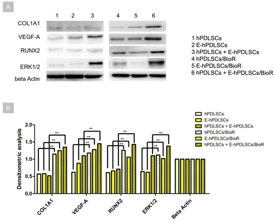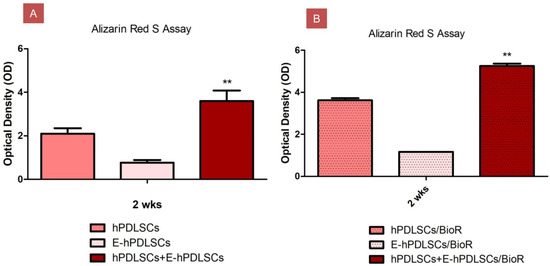 - Pizzicannella, J.; Gugliandolo, A.; Orsini, T.; Fontana, A.; Ventrella, A.; Mazzon, E.; Bramanti, P.; Diomede, F.; Trubiani, O. Engineered extracellular vesicles from human periodontal-ligament stem cells increase vegf/vegfr2 expression during bone regeneration. Front. Physiol. 2019, 10, 512. [Google Scholar] [CrossRef] [PubMed]