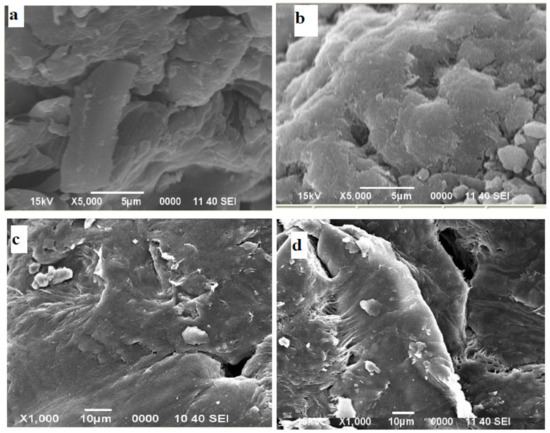 Figure 3b corresponds to micrograph of PEO which shows rough morphology of PEO as reported in literature [23]. The SEM images of PANI-PEO-KNO3 and PANI-PEO-NaNO3 composites are shown in Figure 3c,d, respectively. These images show the association of the cations of sodium and potassium to a small extent due to their dissimilar nature. However, the incorporation of potassium and sodium salts converts the composites into a gel like material. This makes the composite materials more flexible and stiff [24]. The pores and cracks in figure c and d may be due to the heat treatment during drying of the samples. However, such a porous surface morphology is best suited for adsorption phenomena.