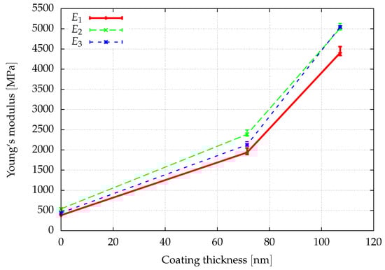 Comparison of the effect of the coating thickness on the Young’s moduli in the -direction.