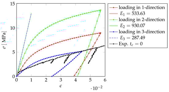 Applying these material parameters, the polymer has a much more pronounced stiffening effect on the stress–strain curve than determined from the experiments—see Figure 18a.