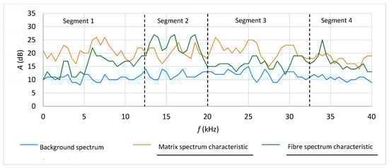 Background, fibre and cement matrix acoustic spectrum characteristics as function of frequency [12].