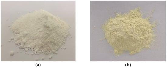 Based on the above principle, the preparation process involves firstly weighing nano-TiO2 and ferric nitrate in the amount of 100 g and 15 g, respectively. Then the starting materials were manually premixed and poured into the ball mill jar. The rotational speed and the ball-to-powder weight ratio were 300 rpm and 30:1, respectively. After 3 h of ball milling process, the mixtures were put into a muffle furnace, and calcined at 400 °C for 3 h. Subsequently, the obtained samples were washed by deionized water three times to remove any residual ferric nitrate. At last, the samples were dried at 90 °C for 6 h and then ground into powders. The high energy ball milling setup is shown in Figure 1. The original and modified nano-TiO2 are shown in Figure 2.