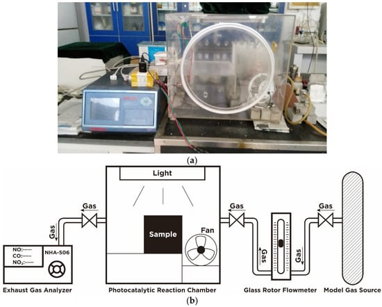 - Xia, H.Y.; Zhang, R.; Song, L.F.; Gao, L.N.; Liu, G.Y. Test Device for Photocatalytic Coating Degradation Performance of Automobile Exhaust Gas. Chinese Patent CN201621076982.3, 23 September 2016. [Google Scholar]