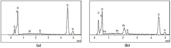 Energy Spectrum Analysis of nano-TiO2. (a) Original TiO2 and (b) Modified TiO2.