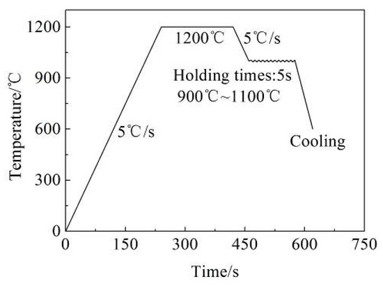 The experimental equipment is a Gleeble-3800 thermal simulator developed by DSI Company in the United States (Kansas City, MO, USA), which has the function of thermal dynamic simulation. It can be widely used in the performance analysis of materials in the process of continuous casting, pressure processing, heat treatment, welding and so on. The main parameters are shown in Table 2.