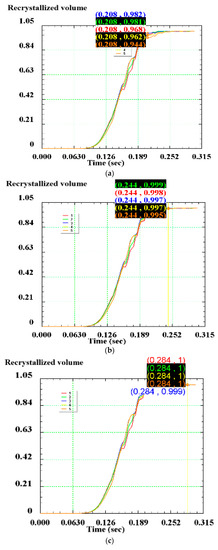 By combining Equation (10) with Equation (12), the dynamic recrystallization volume fraction can be expressed as follows: