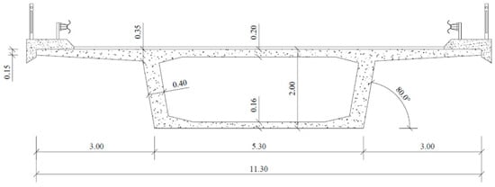 Example of a RC box (hollow) beam for a bridge deck (dimensions in meters).