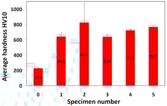Figure 7 shows a graphical comparison of the average surface hardness values corresponding to individual hardfacings and 16MnCr5 steel reference material.