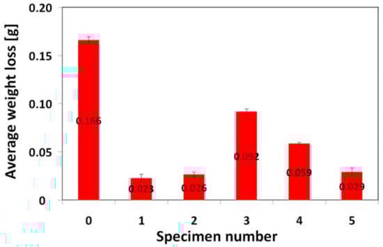 Figure 8 represents a graphical interpretation of the average weight loss of individual investigated materials subjected to the specified three-body abrasive wear testing (Figure 1).
