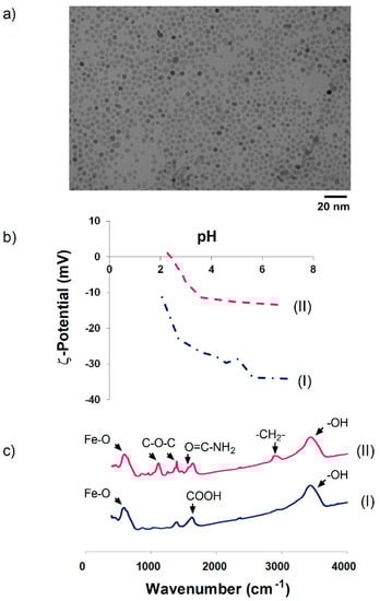 - Lattuada, M.; Hatton, T.A. Functionalization of Monodisperse Magnetic Nanoparticles. Langmuir 2007, 23, 2158–2168. [Google Scholar] [CrossRef]