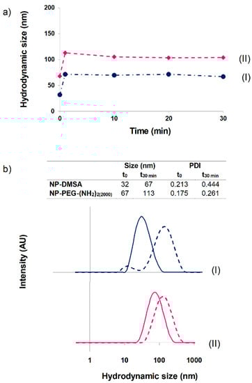3.1. Synthesis and Characterization of DMSA and PEG-Coated Nanoparticles