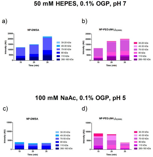 - Tenzer, S.; Docter, D.; Rosfa, S.; Wlodarski, A.; Kuharev, J.; Rekik, A.; Knauer, S.K.; Bantz, C.; Nawroth, T.; Bier, C.; et al. Nanoparticle Size Is a Critical Physicochemical Determinant of the Human Blood Plasma Corona: A Comprehensive Quantitative Proteomic Analysis. ACS Nano 2011, 5, 7155–7167. [Google Scholar] [CrossRef]