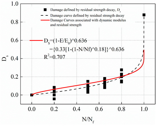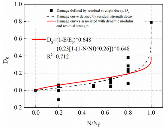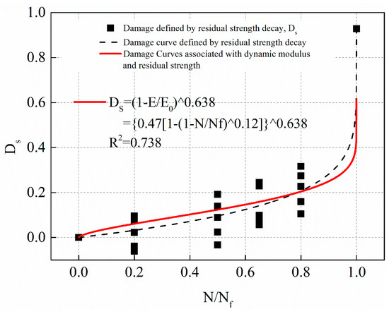 During the fatigue test, the dynamic modulus decreases with the continuous evolution and accumulation of internal damage, and the dynamic modulus decay is a damage variable that can be continuously measured. Therefore, the dynamic modulus is also a universal variable to describe fatigue damage of asphalt mixture. However, the existing models of residual strength and dynamic modulus are often proposed independently, and most of them lack a good consideration about the relationship between them, which results in a large number of tests when studying the fatigue behavior of asphalt mixture and describing its fatigue damage state. In addition, the residual strength test is destructive, and only one residual strength value can be obtained for each specimen. The test cost is very high. Moreover, there are individual differences among the specimens, and the comparability between the residual strength of different specimens is poor. Consequently, it is necessary to study the relationship between the two damage variables and propose a method for defining the damage variable with good applicability and high reliability.