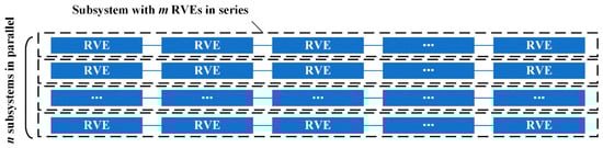 To calculate the statistical characteristic of CFRP tensile strength, a numerical simulation method was conducted. Firstly, numbers of virtual CFRP specimens were established and modelled by the proposed series-parallel system. Each specimen contains m × n RVEs, as shown in Figure 4.