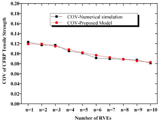 Comparison of COV of the CFRP strength of the n-element parallel system.
