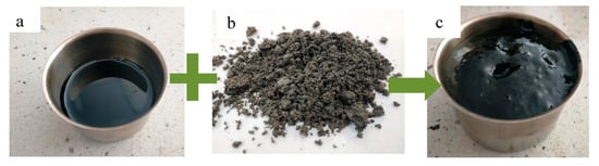 (a) 20 grams of 20/30 asphalt in a temperature of 135 °C; (b) Na-P1 zeolite soaked with water; (c) foaming effect of asphalt caused by water releasing from the zeolite.