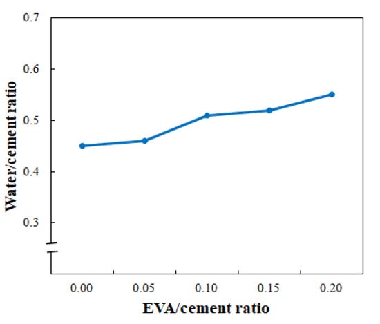 - The W/C ratio increased when the EVA/cement ratio was increased to obtain an optimal flow of 65%, which was due to the redispersible nature of EVA.