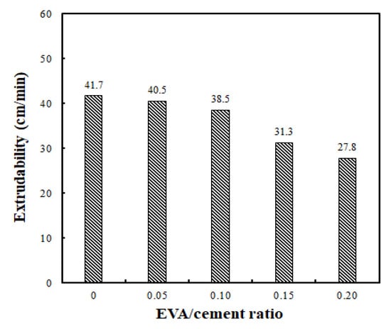 Comparison of extrudability using different EVA/cement ratios.