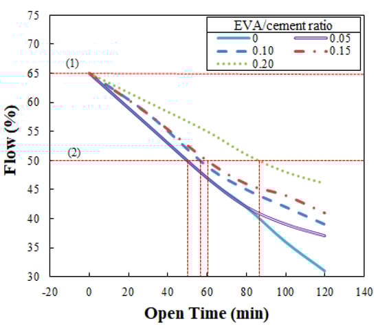 - At the same elapsed time, the flow increased when the EVA/cement ratio increased, which was particularly beneficial in terms of securing flowability.