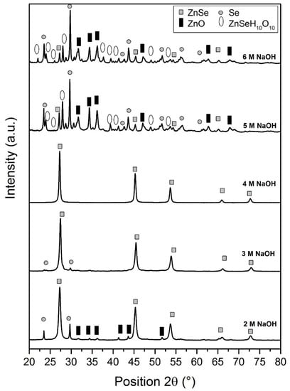 Phases of the synthesized ZnSe/GO composite by varying the NaOH concentration.