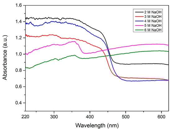 UV-Vis absorption spectra for the sample synthesized with different concentrations of NaOH.