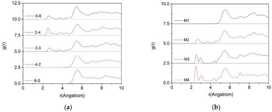 The RDFs of Ot-Hw in montmorillonite with different charge positions ((a), M4) and densities ((b), Mi0-6).