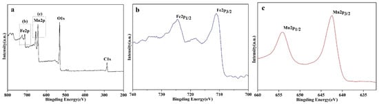 XPS survey spectrum of (a) FMNs1.25 and corresponding high-resolution (b) Fe2p, and (c) Mn2p spectra.