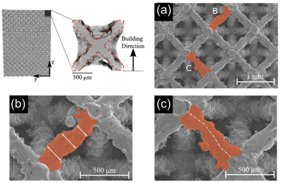- Kadkhodapour, J.; Montazerian, H.; Darabi, A.C.; Anaraki, A.; Ahmadi, S.; Zadpoor, A.; Schmauder, S. Failure mechanisms of additively manufactured porous biomaterials: Effects of porosity and type of unit cell. J. Mech. Behav. Biomed. Mater. 2015, 50, 180–191. [Google Scholar] [CrossRef] [PubMed]