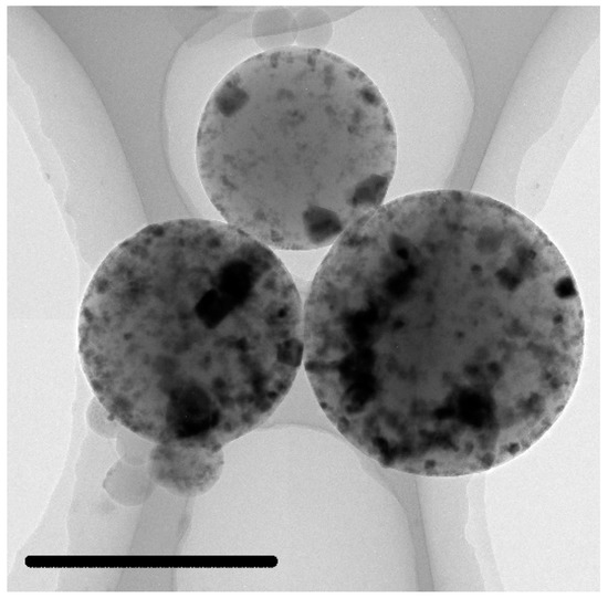 In order to further reveal the electromagnetic wave loss mechanism of C@Fe3O4, the electromagnetic parameters of MC-3 were analyzed in depth. The reason was its excellent microwave absorbing properties. The TEM image of MC-3 is shown in Figure 10. Inorganic nanoparticles were the materials with high mass thickness contrast. Their distribution was partially clustered. The space in the microspheres with low mass thickness contrast was carbon.