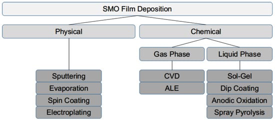 Summary of techniques used for SMO film deposition, where CVD is chemical vapor deposition and ALE is atomic layer epitaxy.