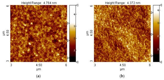 Similarly, as in the case of contact angle goniometry, the atomic force microscopy measurements were performed in ambient air at room temperature of about 24 °C and at a relative humidity of 35%.