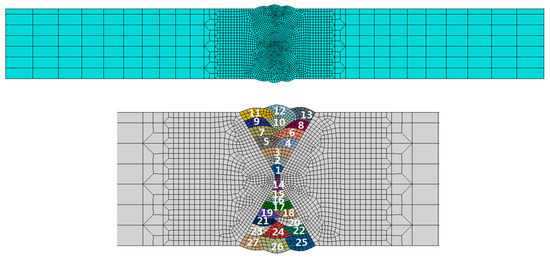 Thick plates are widely used in nuclear power plants, ships, large bridges, etc. [1,2]. Uneven welding temperature distributions, and significant constraint conditions [3] in the thick-plate welding process mean that complex residual stresses are generated owing to the need for multiple welding passes. Numerical simulation has become an important tool to predict welding residual stress, but the ability to simulate the structure is always limited by available computing power in such transient non-linear models aimed at reducing the welding process, and time, complexity [4,5]. Many researchers also put forward some calculation methods to improve the accuracy of the calculation [6,7,8].