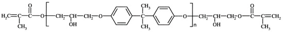 The characteristics of the vinyl ester resin, purchased from Shanghai Showa Chemicals Co., Ltd. (China), are shown in Figure 1, and the basic resin parameters are given in Table 1. A weight ratio of vinyl ester resin and the hardener (MEKP/cobalt octoate, Shanghai Showa Chemicals Co., Ltd. (Shanghai, China)) was adopted in this study: 100:2:0.8 (vinyl ester resin/MEKP/cobalt octoate). The structure of monomer system is shown in Figure 2 [27].