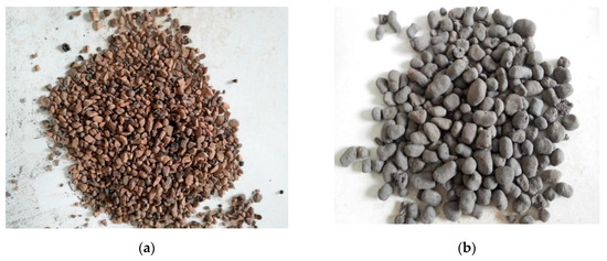 The ceramsite in this study was divided into small (3–5 mm) and large (10–16 mm). The two kinds of ceramsite are shown in Figure 3. The specific density of small ceramsite was 1.05 g/cm3 and the that of large ceramsite was 0.87 g/cm3.