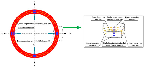 - Yang, J.J.; Liu, Q.L.; Zhen, G.S.; Hu, H.J. Shaft Lining Structure Model Test. Coal Sci. Technol. 1996, 24, 14–16. [Google Scholar]