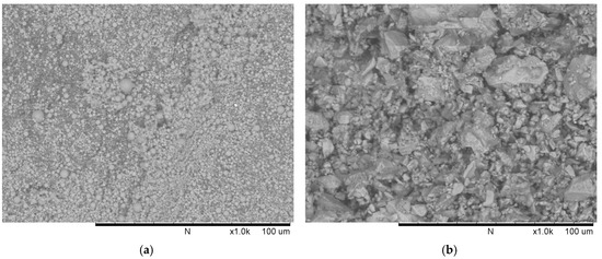 Commercially available low-calcium fly ash (ASTM C618 Class F [19], Shenzhen Dot Technology Co., Ltd, Shenzhen, China) was used as the main binder material in geopolymer concrete. It can be seen from Figure 2a that the fly ash particles are of spherical shape. The Chinese 42.5R ordinary Portland cement (Sichuan Lanfeng Cement Co.,Ltd, Chengdu, China) conforming with the requirements of the national industry standard “GB 175-2007/XG1-2009” [20] was used in this study. The cement particles are of irregular shape (Figure 2b). The chemical compositions determined using X-ray fluorescence (XRF, XRF-1800, SHIMADZU, Kyoto, Japan) and loss on ignition (LOI) of fly ash and cement were presented in Table 1. Additionally, the mineral compositions of OPC are illustrated in Table 2.