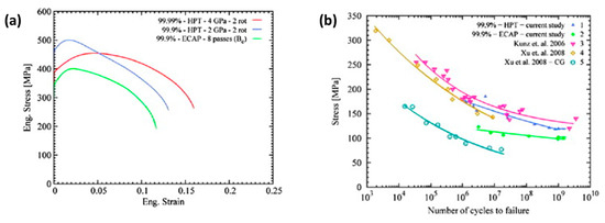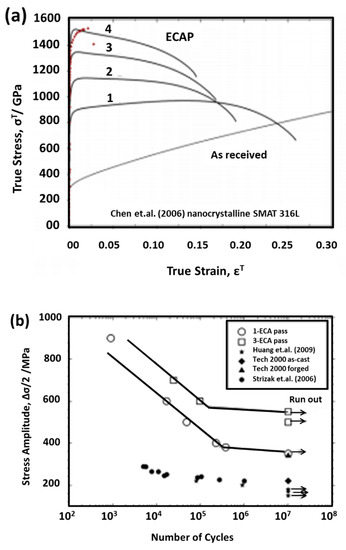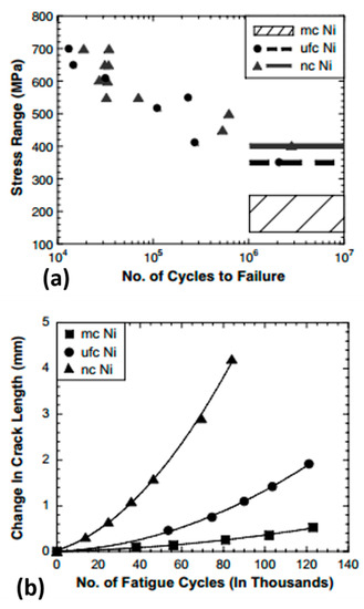 - Hanlon, T.; Kwon, Y.-N.; Suresh, S. Grain size effects on the fatigue response of nanocrystalline metals. Scr. Mater. 2003, 49, 675–680. [Google Scholar] [CrossRef]