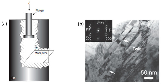 - Zhang, X.; Misra, A.; Wang, H.; Nastasi, M.; Embury, J.D.; Mitchell, T.E.; Hoagland, R.G.; Hirth, J.P. Nanoscale-twinning-induced strengthening in austenitic stainless steel thin films. Appl. Phys. Lett. 2004, 84, 1096. [Google Scholar] [CrossRef]